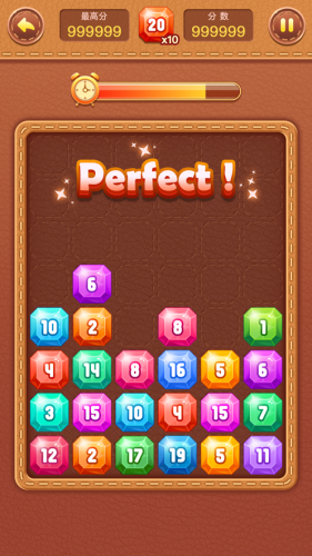 1、欢乐抓数字将方块合并为更大的数字,获得尽可能多的20方块并挑战高分。