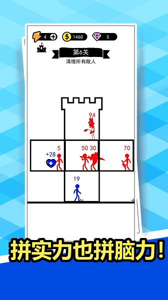 狂扁你一顿游戏最新下载安装一款融入了数字爬塔对抗玩法的手机游戏。游戏采用了简笔火柴人风格作为亮点,你的头顶已经关卡boss的头顶上都会有数字,你需要挑战数字比你小的关卡战胜对手并将数字增加到自己的头上,这样你就可以挑战数字更大的敌人。