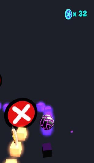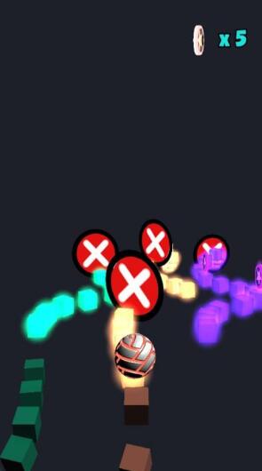 1.霓虹球会自动向前移动。玩家只需左右滑动屏幕即可控制霓虹球的前进,顺利到达终点。