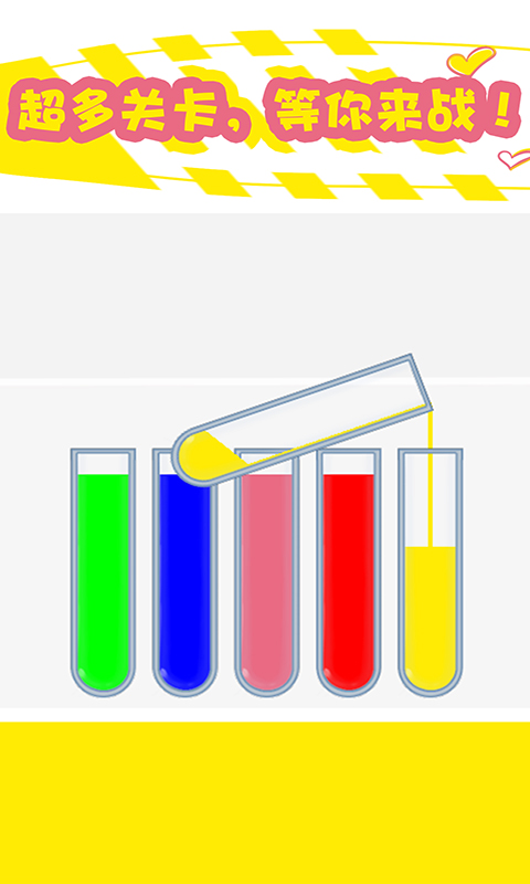 倒水我最强游戏是一款比较简单的休闲闯关类手游,在游戏里有很多的倒水方法,玩家可以尝试着各种各样的倒水方法,把不同颜色的水倒入试管中,考验了玩家的思维判断能力非常的有挑战性,每一个玩家都可以加入挑战设计的关卡也是非常的新颖,自由的玩耍带来了无限的快乐。游戏中玩家只有将相同颜色的水才可以倒入才能通关,不知道怎么办的时候千万不要勉强自己,不如新增一个空瓶子,游戏有助玩家轻松缓解压力!游戏考验着玩家的耐心和细心程度,感兴趣的玩家快来体验倒水游戏带来的乐趣吧!