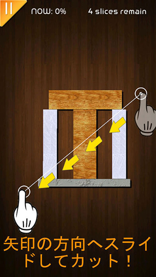 2、切白色块帮助推倒木块,绿色块不能掉落。