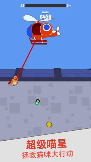 超级喵星是一款休闲的闯关游戏,该游戏讲述了地球上所有的小猫咪都被外星人绑架了,而现在只有作为超级喵星英雄的你才能将他们救出。游戏中现有大量的有趣关卡可供玩家们挑战,并且还有海量的皮肤可以更换,外加该游戏Q萌可爱的3D萌猫设计和造型,会让不同年龄段的玩家们都能享用,而对于游戏内的操作也十分的简单,触屏操控超级喵星英雄的下行绳索,并在沿途中收集金币和拯救小喵为己任,突破层层关卡,成功完成所有挑战!