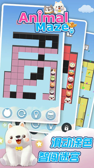 3、用帅气的方式以及最萌萌的宠物,将所有的迷宫填满涂色!