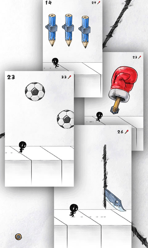 后面还有五花八门的各种机关在等着火柴人,比如足球?、匕首、飞镖或者钉板,甚至道路也会断开出现陷阱,掉进去一样会挂。