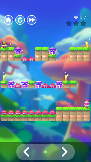 2、不同的关卡场景画面以及难度等级都不同哦,跨越山河,避开刺刺球吧。