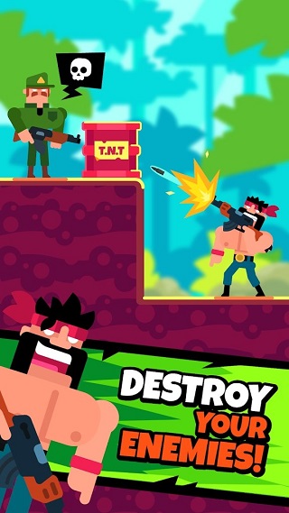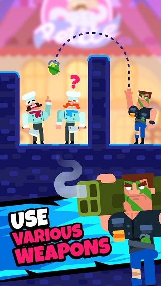 用你的脑袋和不同的武器来完成各种任务。射击子弹或发射榴弹,它们能够弹射、弹跳或飞像坏人的头部。别忘了领取外观,来让你更帅气地完成暗杀!