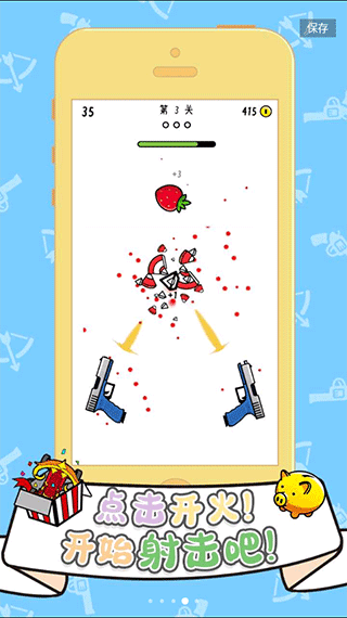 当然在你游戏过程中值得注意的是,你每次命中目标都会对其造成小幅度的击退效果,如果玩家的开枪节奏过快,则很有可能使其偏离正确的运动轨迹导致难以命中,或是直接超出屏幕范围导致游戏失败,还是比较考验你的技巧的,喜欢的快来下载进行体验。
