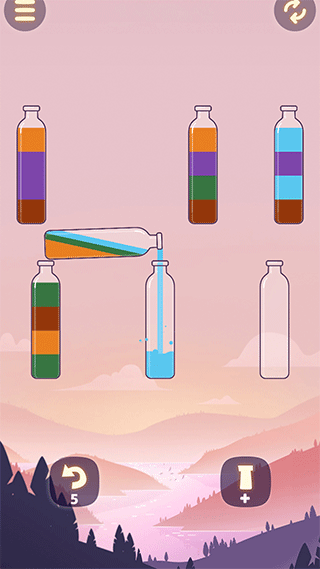 漂流瓶排序手游是一款非常好玩的休闲益智类倒水颜色分类游戏,玩法简单有趣,玩家只需将很多装有不同颜色的液体的瓶子,进行多次倒置排序分类,最后将所有同种颜色的液体装入相同的瓶子内就能顺利通关了,游戏非常烧脑,可以锻炼玩家准确的判断能力。