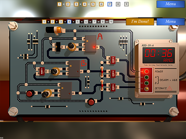 该游戏模拟了真实的拆弹场景,以专业炸弹拆除训练课程为主,玩家们将会来面临各种情形之下的爆炸物拆除工作,你需要通过对电子板的分析,阻挡电路的运行,拆除成功你就可以获取高分,晋级到下一个关卡中。