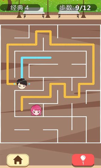 3、你可以滑动屏幕,操纵你的男朋友在迷宫里找到他的女朋友,看看你是否能最终找到你的男朋友。