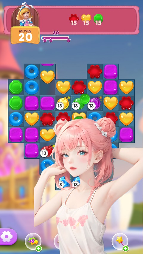 2、开局玩家可选择道具,以协助快速过关,每一关都有不同的挑战目标。玩法规则,同传统三消相同,划动匹配更多糖果颜色。