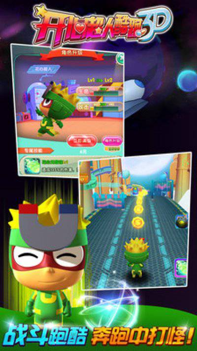 1、开心超人酷跑3D是一款好玩的敏捷游戏。开心宝贝,酷炫变身,打怪卖萌两不误;