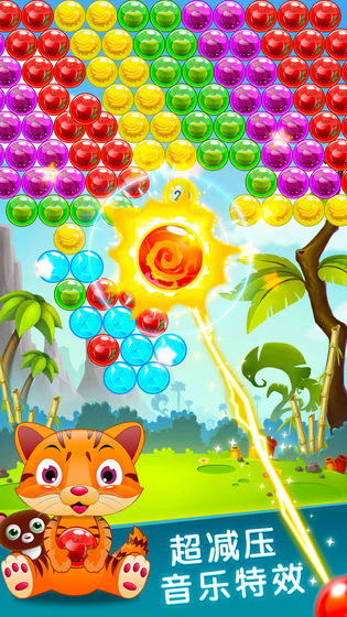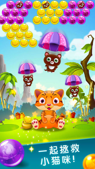 淘气的小猴子价格猫宝宝抓走了,快来帮助猫妈妈营救出它的的小宝宝们!《泡泡龙猫咪精灵》是一款非常好玩的休闲泡泡龙射击游戏,泡泡龙猫咪精灵游戏是由巴基斯坦工作室Red Tomato Games开发的泡泡龙,希望各位老铁多多支持巴铁的游戏!游戏中玩家利用各种道具和策略的射击。消灭泡泡,拯救出被困的猫宝宝们!