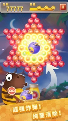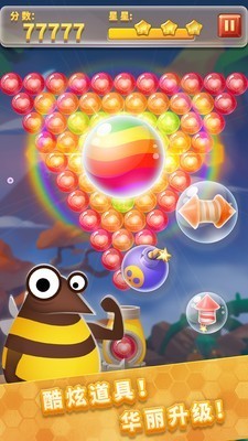 跟随呆萌小蜜蜂吉米和波比去丛林采集蜂蜜。游戏过程中泡泡轨迹可灵活控制,