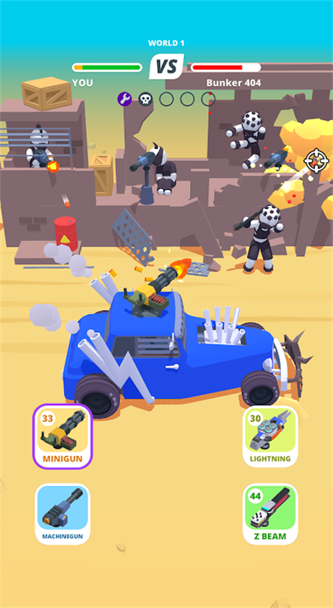 4、制定合理的战术策略,选择合适的汽车和武器,以及灵活利用地形和道具击败对手,爽快驾驶手感很棒。