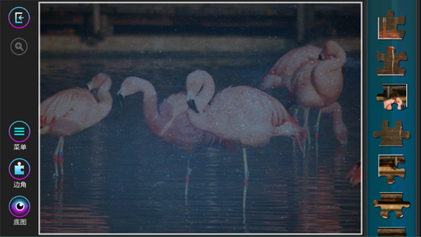 4、将右边的碎片拖动到正确的位置即可,如果忘记了原图什么样,也可以点击左下角的“底图”查看;