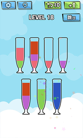 4、所有相同颜色的液体都在同一玻璃杯中,即可过关!
