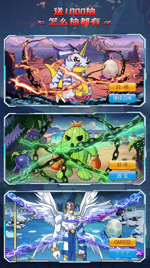 1、上线福利:玩家上线即可获得究极数码兽、100抽、100W钻石、88W金币、88W数码兽经验等丰厚奖励,极大提升了玩家的初期游戏体验。