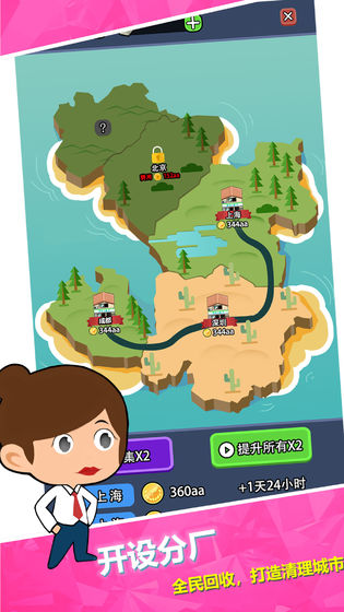 有一个非常热门的话题争议,那就是垃圾分类从上海市着手监督此事后,各种趣味事件层出不穷,如果你的城市也进行了细致垃圾分类,你会不会每次扔垃圾都会纠结“这是什么垃圾”,如果将这项举动变成一项创业前景,你有没有想过?今天小编就推荐一款“垃圾分类”主题的模拟经营游戏,放置回收大亨游戏是一款卡通风的城市垃圾创业模拟游戏,该游戏轻松简单的操作流程,全称自动化的经营方式,可让你在休闲放松时,也能源源不断的获得收益,同时新鲜的立意题材,充分感受期间的趣味经营,游戏中你所经营的整个城市垃圾回收过程,可通过招募员工,升级流水线,增加产品线来实现垃圾分类的有效管理和有效利用,甚至在以后你可以将这家具有特色的工厂,投放到其他城市,以便开启回收大亨的养成之路。