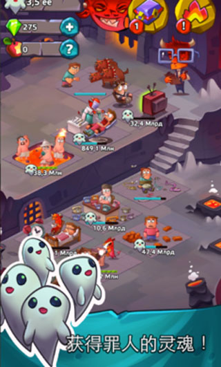 总体来说游戏主要以收集灵魂为目标,通过有限的灵魂数量来建造更高级的“车间工坊”来形成更为完善的工程,一次来赚取更多的灵魂,期间游戏的车间可进行升级,升级到一定的等级可增加其速率。