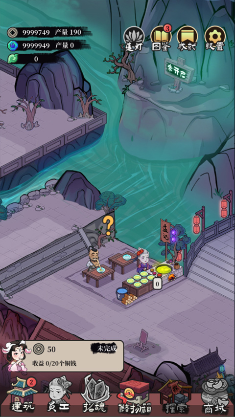 6、完成建筑之后,就需要你送走鬼魂,帮助他们顺利离开,送走一个鬼魂之后就会获得莲灯的绽放