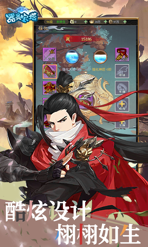 器灵宝塔官方版是一款以挂机+RPG为核心玩法的仙侠游戏,该游戏结合了国风和仙侠的特色,让玩家可以在轻松休闲的放置过程中,体会到暴击杀怪、装备满地掉的乐趣。游戏还有仙法、圣物、神石、古今物语等系统,更是给游戏平添了不少乐趣。玩家打怪升级的路途上不止降魔伏妖,还有各种形象时装幻化, 有酷炫的翅膀,有可爱的宠物,有有趣的家园,有刺激的寻宝,各种有趣的玩法等着你。