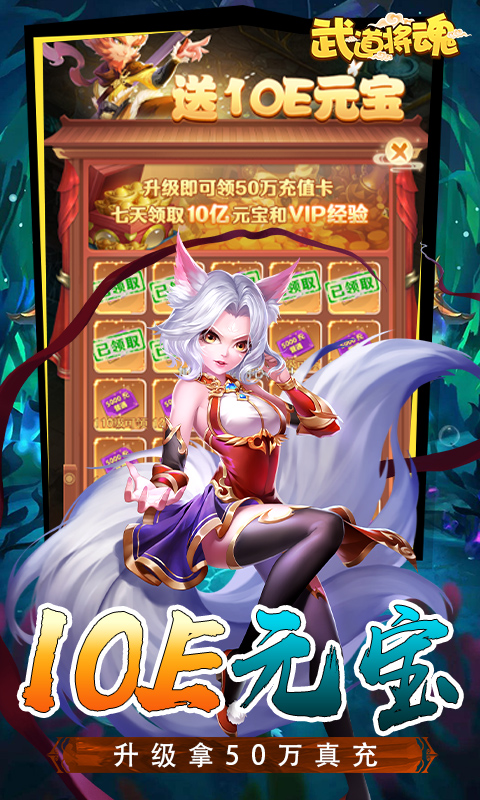 2. 初始赠送V50,VIP礼包拿到手软!上线还送10E元宝,升级就可以拿!还能激活VIP!轻轻松松拿满VIP!