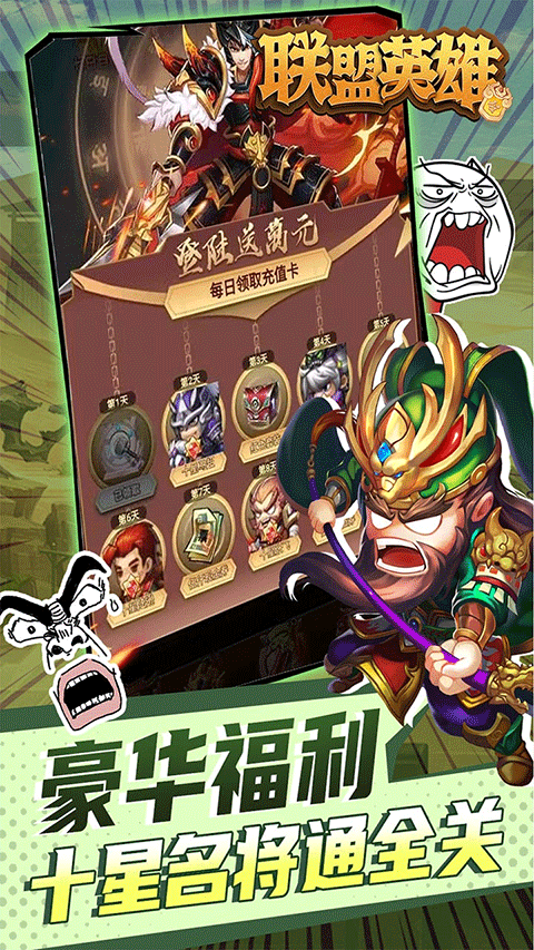 联盟英雄是一款三国题材游戏。游戏的玩法非常的丰富独特,将我们熟悉的三国历史人物和经典的回合制玩法相结合,为大家带来了一个不一样的三国世界。游戏的玩法非常的简单,我们进入游戏后,便能够开启自动战斗模式,完全不需要我们进行操作,而且每个角色都有着自己的特点和优势,我们需要根据不同英雄的技能和特点来进行搭配,从而发挥出角色最大的优势,从而更好的击败敌人。