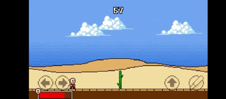 5、右边向上的箭头控制跳跃,棒子图标点击后可以挥动棍棒打飞苹果。