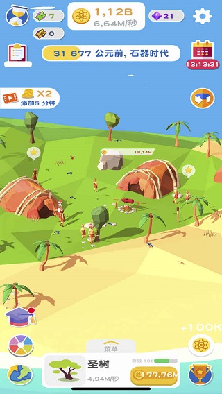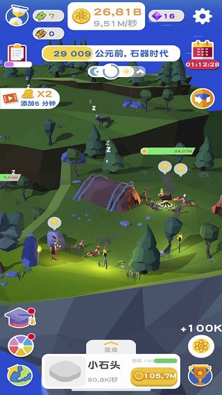 为此玩家可以通过探索,研究并升级建造,源源不断的原子会因为升级而变得更多,若你不想点击,可以解锁自动收集功能,之后玩家只需将心事放在创造世界的格局上即可。从石器时代、罗马时代到未来,你会感觉在不同的时代,有着全新的物种和建筑出现,探索新的建筑和新的生物,为新世界创造增添新的活力!