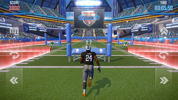 游戏操作相当简单,操作的球员自动会向前奔跑,玩家只需划动屏幕,就能让球员往划动方向闪避,能获得多少分数就看玩家你的水平了。