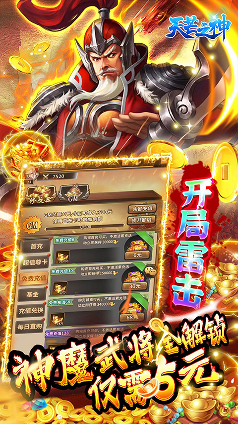 1、开局闯关就送gm特权,来助力你游玩游戏;