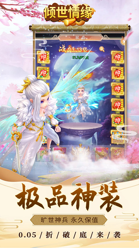 PS:这里给大家带来了倾世情缘手游0.05折,此版本拥有0.05折福利,折扣力度非常高,让你花更少的钱买更多的资源,有兴趣的小伙伴赶紧来下载试试吧!