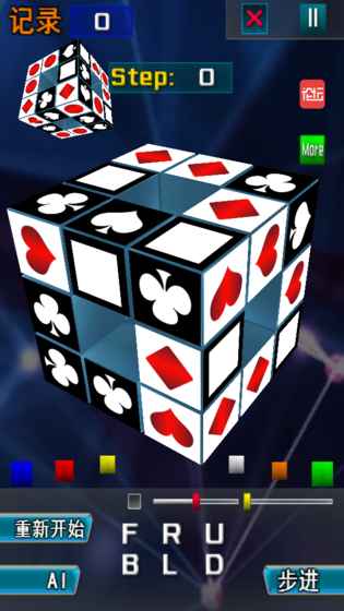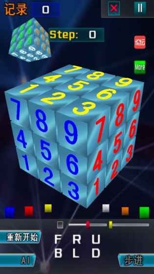 如果你懒得记公式,只是想单纯的还原一次魔方,那么在编辑模式中,系统可以用最可能少的步骤一步步的为你演示,你只是需要拿着你的实体魔方照着扭就行了。