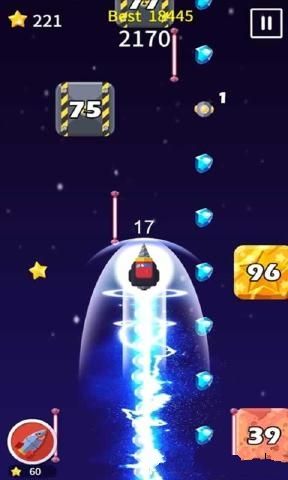3、玩家需要不断的让钻头变长才能冲破这些阻拦在前路上的砖块。