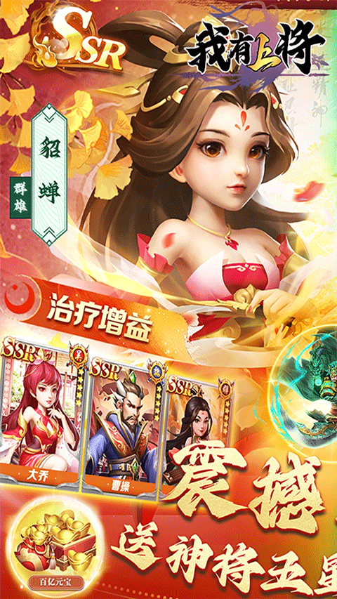 【招贤纳士,百大英雄任您挑选】 无限十连抽免费送,轻松招募英雄豪杰 美术升级精致立绘,一览三国人物魅力 ;