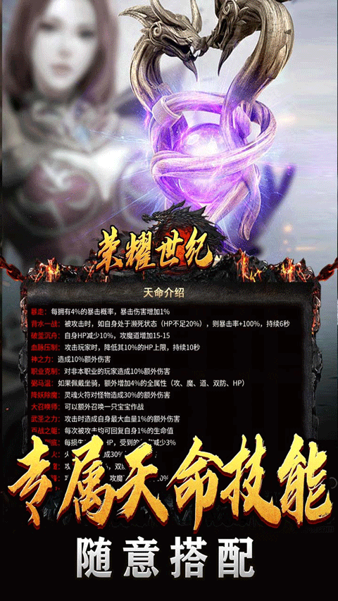 荣耀世纪是一款经典好玩的复古天命三职业传奇类手游,以传奇题材为背景,秉承最原汁原味的传世风格打造,一样经典的沙城画面,同样的战法道职业设计,都悉数的复刻端游,而且不管是装备系统、还是正统的传世体系以及传统的MMO成长线,亦或是PK爆装还是攻沙,也都在手机上得到了完美展现,同样的热血经典,同样的争霸传奇,等你前来续写。