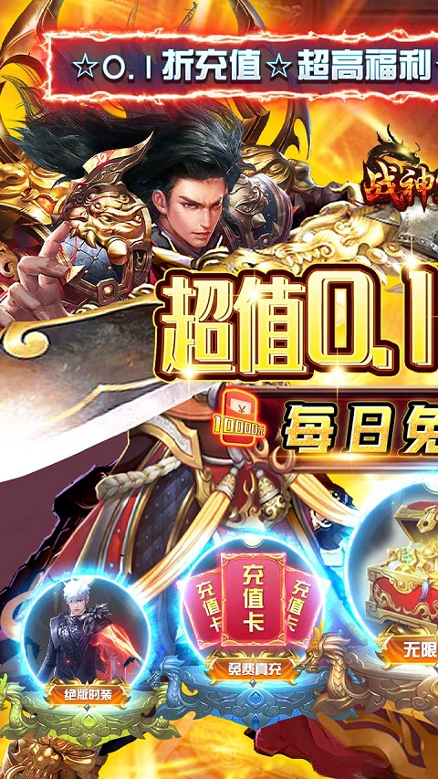 战神霸业h5手游是一款还原经典传奇的大型arpg挂机游戏,带来了经典的传奇样貌,让人玩的回味无穷,上线就送vip15、100w元宝,还有绝版特效动态武圣时装和绝版极品神装等你来拿,一刀999,元宝遍地爆。