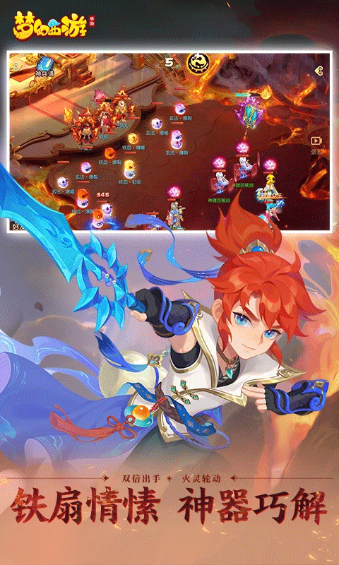 芭蕉神扇挥动风云,三界纷争因扇和解。天命之人巧解鸳鸯结,铁扇公主、玉面狐狸、牛魔王共谱三界奇缘。神器威力初显,能量满溢,角色出击,频率翻倍,瞬息万变。火灵四合进化,堆叠合体,破阵前行。全新神器策略玩法,待天命人逆转战局。三界纷争,一扇定音!