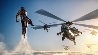 由3D技术、超清晰图像质量和各种机器人创造的宏观战争