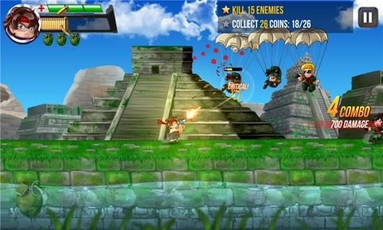 那么你会喜欢这个2D射手的动作冒险!面对数以百计的士兵,坦克,潜艇,机器人,不要再跳起来,射击一个新的射击跑步游戏,同时发射强大的武器,乘坐你的船像一个喷气包。生存军队的士兵,伞兵,火箭发射器和史诗般的敌方老板。
