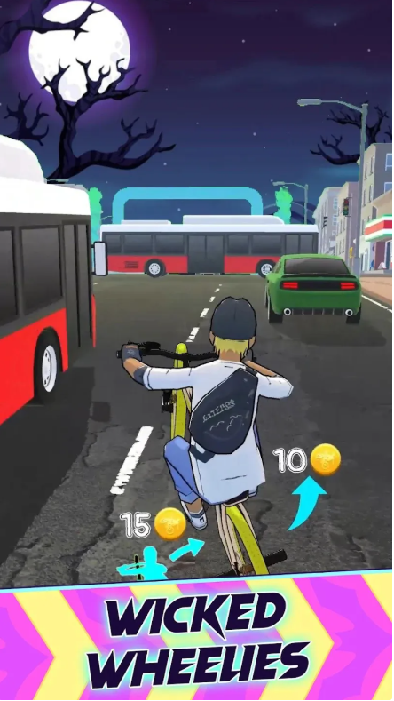 《自行车特技》是一款充满刺激与挑战的自行车驾驶模拟游戏。在这款游戏中,玩家将操作自行车,穿越各种充满障碍的赛道,挑战极限特技。游戏设定了丰富的场景,如闹鬼的墓地、幽灵森林、恐怖城市等,每个赛道都有其独特的地形和挑战。玩家需要通过精准的操作,利用加速和护盾等道具,完成各种高难度动作,同时避开如幽灵、蝙蝠、南瓜等障碍物,展现个人的驾驶技术与平衡能力。