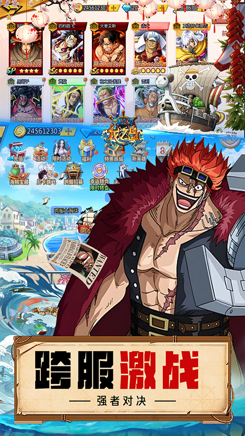 相信不少玩家都看过现象级动漫海贼王,里面有着重视伙伴与朋友的路飞、性格沉稳且实力超群的索隆和头脑聪明有着神级航海术的娜美等等组成了一个个性鲜明的海贼团,相信不少玩家也想加入这个海贼团成为他们的一员。那就来试试这款龙之岛变态版。由东映动画正版IP授权的航海王题材手游,游戏里面完美还原了主角海贼团、海军、革命家和世界政府几大势力的原作剧情,让玩家可以游玩游戏时可以体验到原汁原味的海贼王。