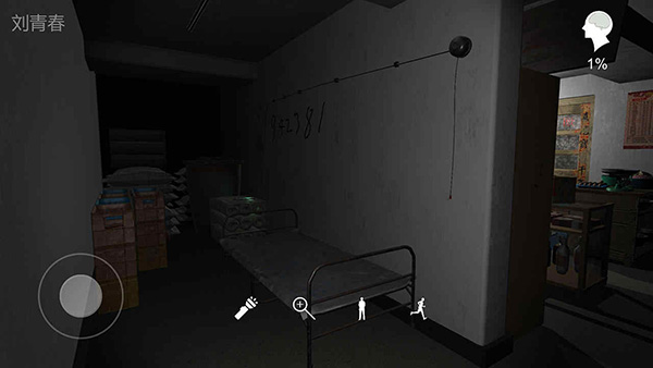 1、如下图所示,角色可以移动、下蹲、奔跑、调整视角操作,使用手电筒、放大镜工具;