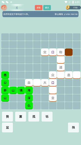 1、进入游戏界面后,只要点击左下角的备选文字,填入上放成语空白处正确的位置即可,玩法比较简单。