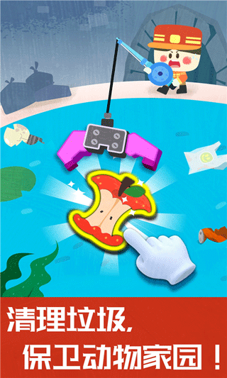 地下城里有好多垃圾啊,宝宝驾驶工程车,去清理垃圾!伸出工程车的抓手,夹起垃圾,把垃圾放入垃圾桶。地下城恢复了整洁,宝宝真是一名环保小卫士。