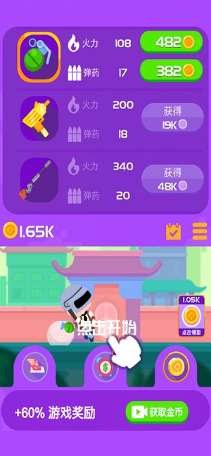 2、各种魔性的武器可以进行购买解锁并升级提升他们强大火力;