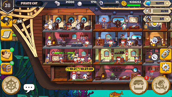 在解了猫咪出海的起因,我们再来了解一下欢迎来到猫勒比的玩法,游戏除了初始喵(二星)外,其他猫咪都可以在船上的建筑物“酒馆”招募。品质从一星到五星,五星喵成长、属性最高,喵星人姓名、外貌、花色、星级都是随机的,想要招募到高星级的猫咪?你可以让自家猫咪到酒馆揽客,打工猫咪星级越高,招募到的猫咪越好,五星喵也不是梦想。感兴趣的铲屎官欢迎下载体验,带领你的小猫咪一起航海冒险吧。