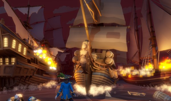 1、盗贼玩家通过海盗船在一个开放的世界中探索海洋,并扮演不同的角色,如方向、升起船帆、导航和发射大炮