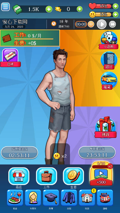 玩家将扮演一名从底层打拼的角色,通过选择不同的工作来积累财富。初期工作如搬砖、送外卖等虽然收入微薄,但逐步解锁更高级的工作岗位,如企业高管、投资人等,能够带来更高的收入。玩家需要合理安排时间,平衡工作与生活,同时不断提升自己的职业技能和知识水平,需要具备一定的市场洞察力和策略规划能力。